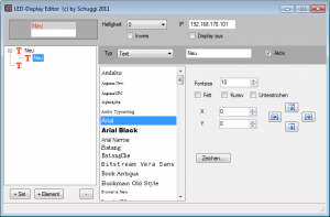 Das Bogendisplay selkbst hat überhaupt keine Ahnung was es anzeigt. Das bekommt sine Infos vom PC-Programm „LEDDisplay“ gesendet. „LEDDisplay“ gehört zur „PureContest“ und muss immer im Hintergrund laufen, damit das Display etwas anzeigen kann. Das Hauptprogramm von PureContest wiederum sendet dem Programm „LEDDisplay“ das waas angezeigt werden soll.