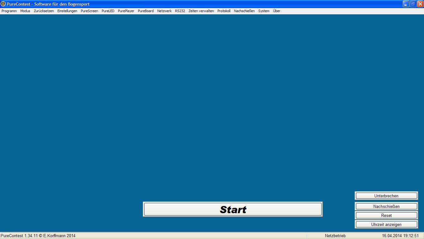 Während des Wettkampfs beschränkt sich die komplette Bedienung auf die Buttons Start/Stopp, Reset , Unterbrechen und evtl Nachschießen.